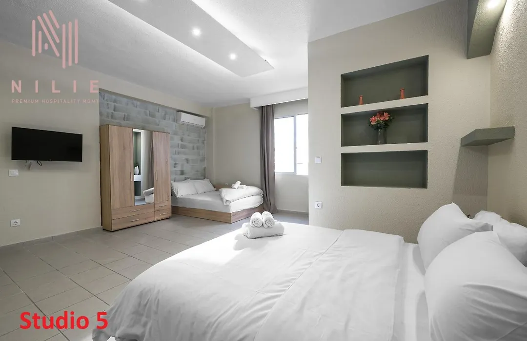 Dispone de una pequeña cocina para los viajeros. La parada de autobús Antigonidon está a tan solo 150 metros.